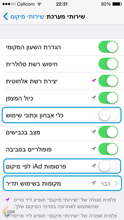 מערכת ההפעלה יודעת לעקוב אחריכם ולהשתמש בנתוני המיקום שלכם. ישנן שלוש אפשרויות שניתן לבטל ולמנוע מהמערכת לבצע: