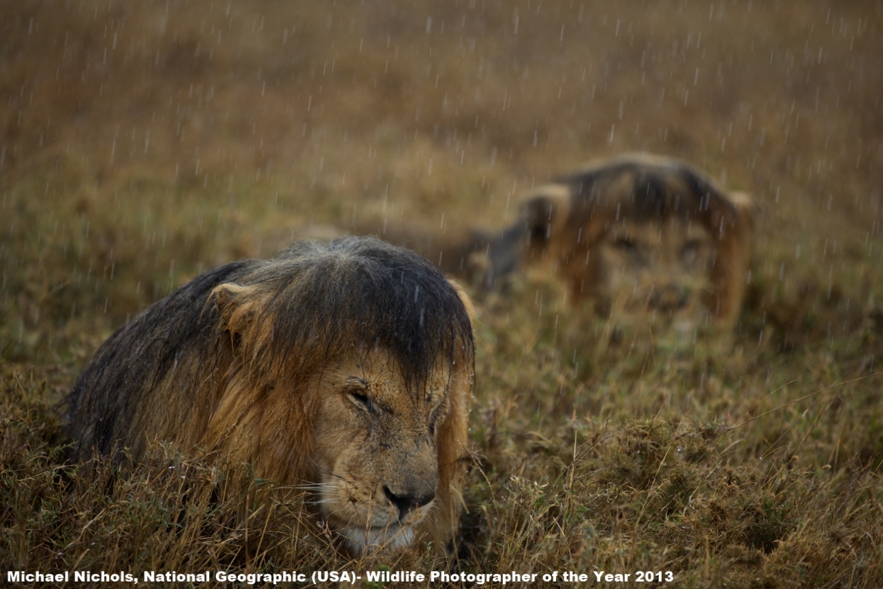 הוא תיעד שני אריות ותיקים שגורשו על ידי יריביהם, נרטבים בגשם השוצף בסרנגטי בטנזניה, אפריקה. למרות הבעת פניהם, מים הם מצרך נדיר באזור ושני האריות ליקקו את טיפות המים היקרות שהרטיבו את פרוותם.