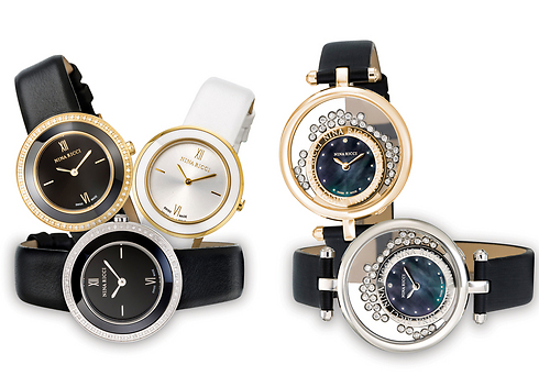 רשת תכשיטי ROYALTY מציגה קולקציית שעוני NINA RICCI. לוח השעון משובץ באם הפנינה ומסביבו אבני יהלומים הנעות בחופשיות בקופסת השעון. מחירו: 5,320 שקל. בנוסף, מוצעת קולקציית שעונים שוויצרים בעיצוב מיוחד, אשר לוח השעון שלהם מוקף טבעת קרמית ובשעונים השחורים משובצים כ-56 יהלומים. מחיר שעון לבן: 1,400 שקל, מחיר שעון בשיבוץ יהלומים: 4,249 שקל.
