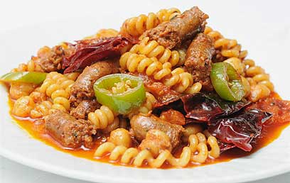 - פסטה עם נקניקיות ועגבניות מיובשות