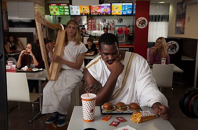 לאחר שביטל פעמיים את הגעתו לצילומי הקמפיין החדש של רשת בורגראנץ' בשל מחלת השפעת, הצטלם סופוקליס שחורציאניטיס, שחקן מכבי תל אביב בכדורסל, לקמפיין הפרסום.