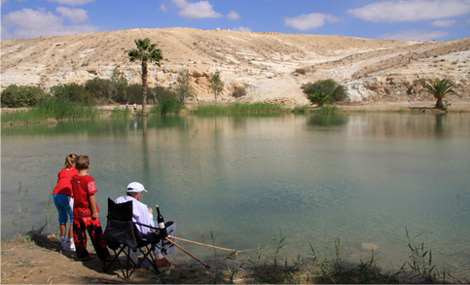 המקום, יצירה של קק"ל, הוא שיקום מחצבה נטושה שנכרתה בנחל רביבים. מקור המים באגם הם המים התרמו-מינרליים שנובעים באתר המרחצאות נווה מדבר ושיטפונות הפוקדים את נחל רביבים.