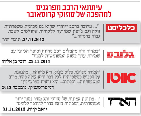 כלכליסט, 09.12.2013, חשף בתחקיר מיוחד את "המכוניות ששינו ב-2013", והיתה שם כוכבת, עם הכותרת הבאה: "סוזוקי קרוסאובר שברה את כלל הברזל של שוק הרכב... על-אף שמדובר במתחרה טרייה כבר ניתן לקבוע בביטחון שהקרוסאובר תהיה להיט מכירות". והיא אכן/כבר כזו.