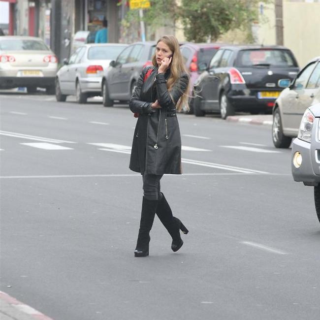 אבל לפני שהספקנו ממש להתגעגע, דוגמנית העל כבר חזרה לישראל והצלחנו לתפוס אותה בעת בסידורים ברחבי העיר חמושה במגפיים שחורים, מעיל עור שחור ולוק כללי של אחת שלא בא לכם לעצבן אותה בחורף הזה (למרות שאנחנו עדיין נזכרים בערגה במפגש שלנו איתה לפני חודש, אז דגמנה בגדי ים ועשתה אותנו המאושרים בבני האדם). מה שתפס אותנו במפגש המקרי עם אסתי זה שהיא היתה עסוקה בשיחה צפופה בפון שלה, ככה שהיא לא שמה לב שהיא עוברת את הכביש לא במעבר חציה. אסתי, אנחנו אוהבים אותך יותר מדי, אז בבקשה תשימי לב בפעם הבאה.