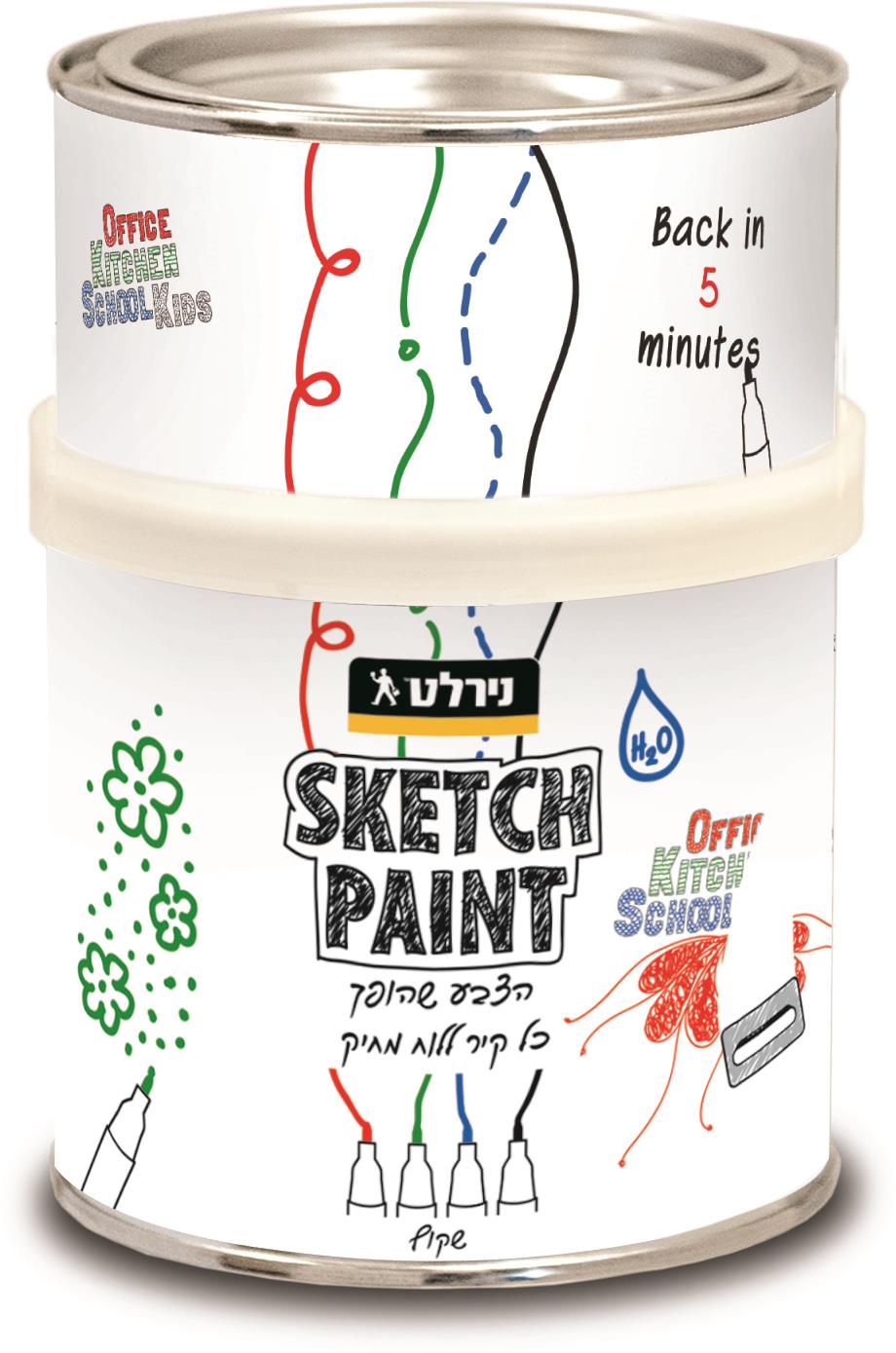 ה-SKETCH PAINT מגיע בגוון שקוף ומקבל את צבע הרקע של המשטח הנצבע. הוא ניתן ליישום על משטחים חלקים כמו קירות, דלתות, ארונות ועוד ומספיקה שכבת צבע אחת נדיבה לקבלת קיר שהוא לוח מחיק. תכולת האריזה, 500 מ"ל, מספיקה, לדברי היצרן, לשטח של כ-3 מ"ר.