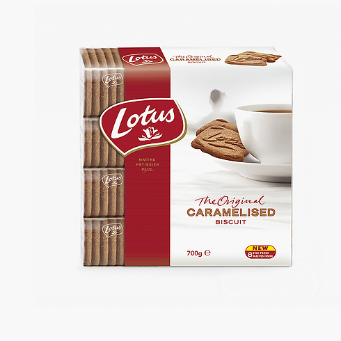 עוגיות לוטוס משיקים את העוגיות באריזה משפחתית הכוללת 8 אריזות פנימיות לשמירה על טריות העוגיות. מחיר מומלץ: 27.90 שקל למשקל 700 גרם.