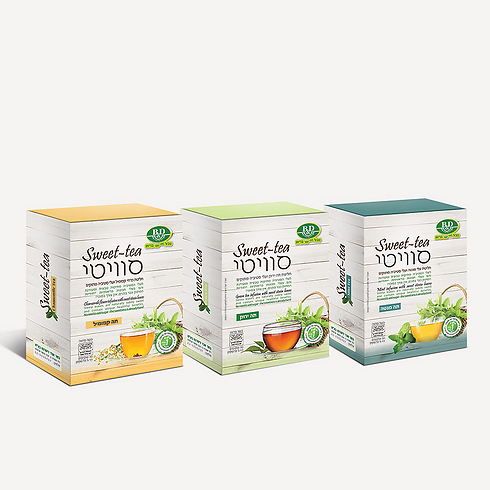 חברת B&D - בטר אנד דיפרנט משיקה סדרה של חליטות SWEET TEA (סוויטי) המכילה בשקיקים המתקה טבעית של עלי סטיביה נטולי קלוריות. מחיר: 19-20 שקל לאריזה של 30 שקיקים.