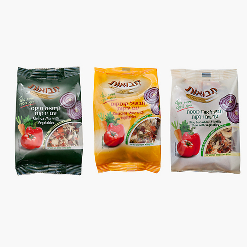 חברת תבואות המייצרת ומשווקת מוצרי מזון אורגניים וטבעיים, משיקה סדרה חדשה של תערובות להכנת תבשילים הכוללת 3 תערובות: קינואה מיקס עם ירקות, תבשיל קוסקוס מלא עם ירקות ותבשיל אורז, כוסמת, עדשים וירקות. מחירים: 15-19 שקל לאריזת 250 גרם. פרטים באתר החברה: www.tvuot.co.il