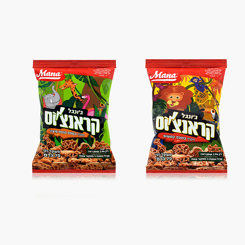 mana משיקים חטיפים חדשים של המותג קראנצ'וס, בצורות של חיות בטעמי קטשופ וטוסט פיצה. מחירים: 3-2.5 שקלים.