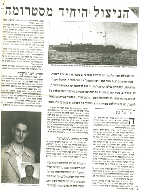 משימה בלימודים סחפה את שי אליאש למסע בלשי בעקבות האדם הבודד ששרד מאוניית המעפילים שהוטבעה ב-1942. כשהבין שהיה הראשון להגיע אליו הוא עשה מזה סרט, שתקצירו נחשף עתה לראשונה ב-ynet. "הייתי לבד, הרגשתי נורא. חשבתי 'מי אני שאשרוד?'", סיפר הניצול דוד סטוליאר. לפני שבוע הלך לעולמו