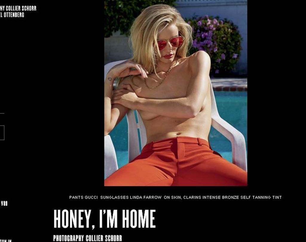 הדוגמנית הלוהטת הצטלמה למגזין V במגוון פוזיציות פרובוקטיביות, הורידה חולצה, חשפה פטמה ואמרה מה דעתה על תמונות עירום ולמה היא אוהבת להצטלם בהלבשה תחתונה