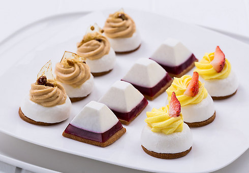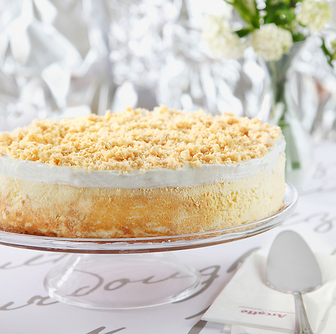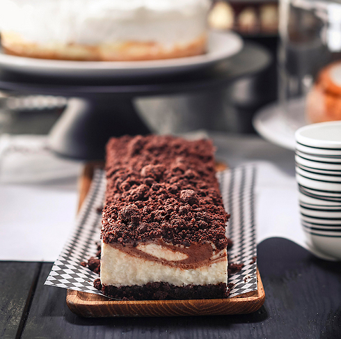 דודו אוטמזגין בשיתוף קמח "מאסטר שף" מציע מבחר עוגות גבינה ושתי עוגות חדשות: מילפיי מסקרפונה - בצק עלים חמאה מקורמל עם קרם מסקרפונה ושרלוט עם פירות יער, קרם פטיסייר וטוויל שקדים. מחיר: 85 שקל.