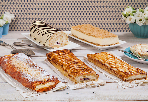 מאפיית לחמים מציעה מבחר עוגות, לחמים ומאפים ברוח החג. בין העוגות המוצעות: עוגת גבינה דובדבנים וקרמבל ב-49 שקל, טארט גבינה ופירות מחיר 59 שקל ועוד. בנוסף, מגשים מיוחדים לשולחן החג - מוצרים בעבודת יד מחצר משק עפאים, לדוגמא: מגש גבינות 600 גרם ב-160 שקל. להשיג במאפיית לחמים.