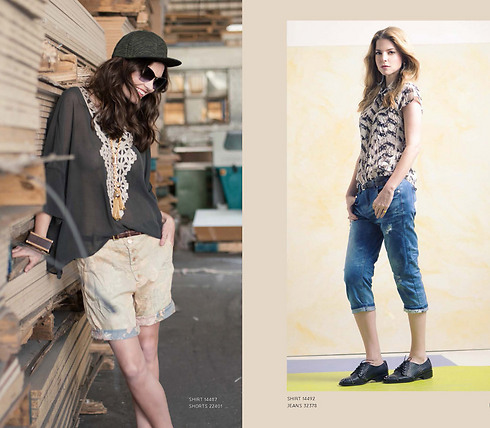 חולצות מעוצבות בגזרות נשיות מבדי כותנה מודפסים, שעברו תהליכי קימוט מיוחדים, חולצות מבדי ויסקוזה משי וקרפ בגזרות אוברסייז במראה אתני צבעוני לצד חולצות וגופיות חלקות במראה קלאסי וערב בשילוב דיטיילים בכסף וזהב .