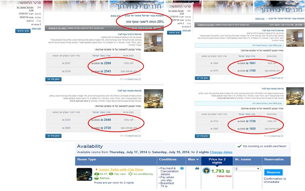 כך למשל, סוויטת ג'וניור שמתומחרת ב-1,601 שקל (ללינה בלבד), עולה 2,268 שקל (לינה בלבד), אם נכנסים לאתר כתושב עוטף עזה שזכאי ל-20% הנחה.