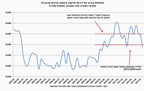 היקף התחלות הבנייה מצוי עתה בפער שלילי ביחס לביקוש "הטבעי" בשוק - כלומר ביחס למספר הדירות המינימלי שיש להוסיף מדי שנה. ביקוש זה מוערך ב-45 אלף דירות בשנה, והוא מורכב, בעיקר, מהיקף הגידול במספר משקי הבית בישראל, שעולה מדי שנה בכ-40 אלף בממוצע, ממספר הבתים הישנים היוצאים משימוש וכן מהדירות הנרכשות על-ידי תושבי חוץ ושאינן מועברות לשימוש של תושבי המדינה.