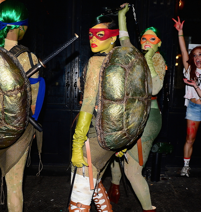 ריהאנה התעלתה על עצמה השנה, כשצבעה את כל (!!) גופה בצבע ירוק. למה? כי הכוכבת התחפשה לרפאל מצבי הנינג'ה. כן, גם שריון היה לה. אנחנו רק מדמיינים את הרגע בו היא תצטרך להוריד את כל האיפור הזה ולא מקנאים בה בכלל. מצד שני, היא ריהאנה.