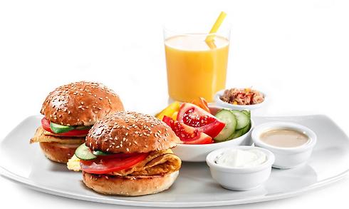 • בוקר של גדולים: 2 לחמניות טריות עם חביתה לבחירה, קרם גרנולה, טחינה גולמית וגבינת שמנת 5%, ירקות חתוכים ומיץ תפוזים.