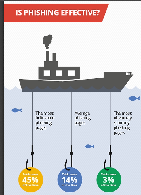 ממחקר שערכה ענקית החיפוש בשיתוף אוניברסיטת קליפורניה עולה כי דואר אלקטרוני שנראה כאילו הגיע מאתרים כגון ג'ימייל ופייסבוק מצליח למשוך לאתר המזוייף עד 45% מאלו שהגיע אליהם הדואר. מתוכם 14% בממוצע יתנו מידע פרטי כמו סיסמה. הצלחת האתרים בהונאה משתנה לפי האיכות שלהם: בין 3% לאתרים הלא מושקעים ל-45% להאקרים מקצועיים. בגוגל מציינים שבהתחשב בכך שכל מתקיף יכול לשלוח מיליוני הודעות כמות החשבונות החטופים עלולה להיות גדולה.