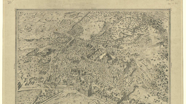 לא ברור איך בציור, שדומה למפה של ירושלים מהמחצית השנייה של המאה ה-19, רואים את העיר מלמעלה, כולל חומות העיר העתיקה והתחלת הבנייה מחוץ לחומות. "אז עוד לא היו מטוסים ולוויינים", אומרת אטינגר, "לא הייתה נקודת תצפית גבוהה מהעיר שתאפשר מבט על, וצלליות הבניינים פונים דרומה, מה שלא קורה בחצי הכדור הצפוני. זה מפתיע שהמפה מצויירת כאילו העיר ניבטת מלמעלה". אטינגר מסבירה את התעלומה: המפה צויירה על ידי סטפן אילש, שהכין דגם של העיר לתערוכה, וצייר את הדגם.