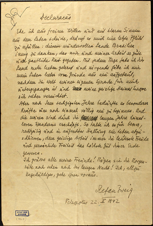 מכתב התאבדותו של סטפן צווייג. קיווה לעתיד טוב יותר עבור ידידיו