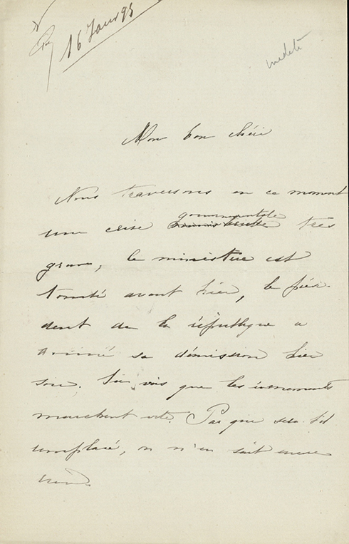 המכתב שקיבל אלפרד דרייפוס מאשתו לוסי, בעת שהיה בכלא הצרפתי