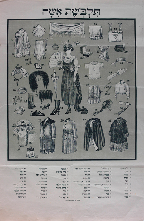 באוסף הספרייה הלאומית קיימת כרזה עם מלים עבריות לפריטי לבוש לנשים, מתקופת מלחמת השפות בארץ ישראל. הכרזה פורסמה ב-1913 מתוך ניסיון לבסס את העברית כשפה המדוברת. רוב המלים שרדו אך חלק מהן לא, כמו גם חלק מפריטי הלבוש שלא שרדו את חידושי האופנה.