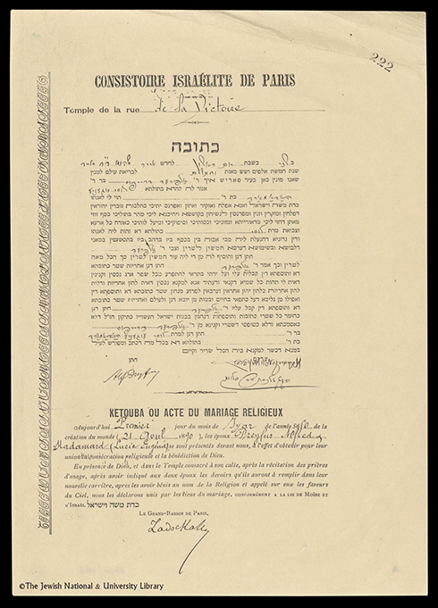 הכתובה של לוסי ואלפרד דרייפוס. יש בספרייה הלאומית אוסף גדול של כתובות