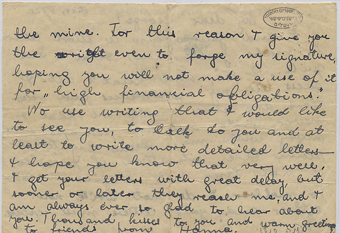 מכתבו של אבשלום פיינברג מארגון ניל"י לאהובתו שרה אהרונסון