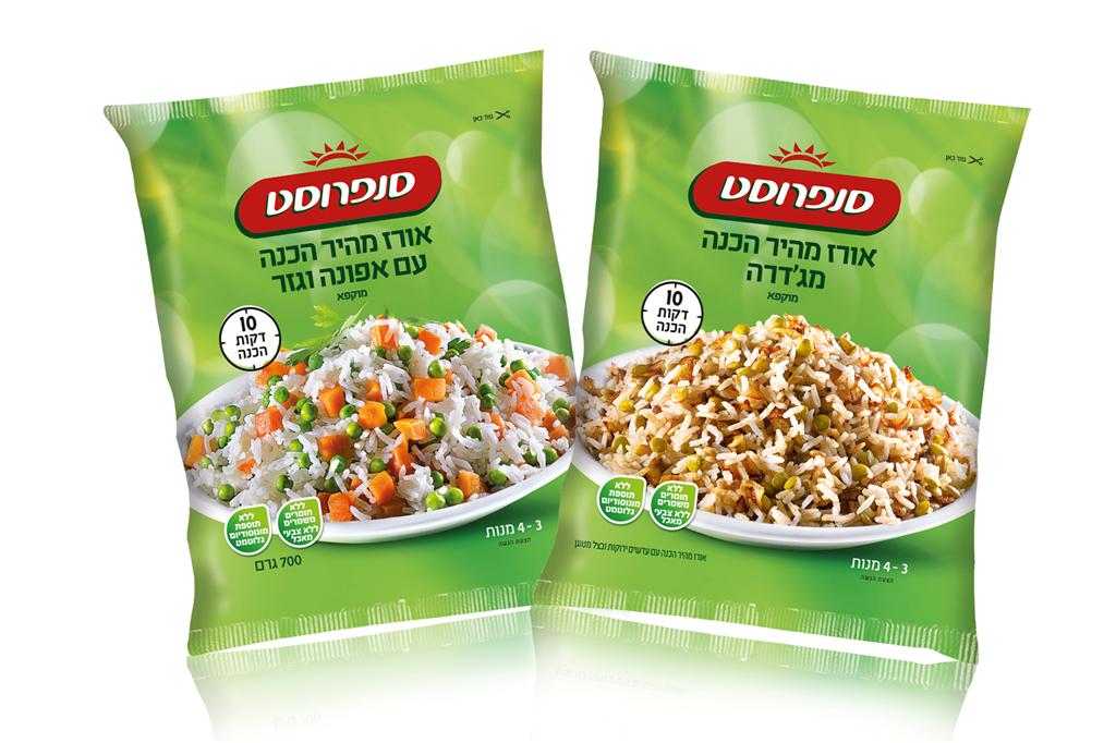 חברת סנפרוסט משיקה מוצר חדש - שאהבנו במיוחד: אורז מהיר הכנה עם ירקות, בשני סוגים: מג'דרה ואפונה וגזר. שני סוגי האורז נשמרים במקפיא, ובעת הצורך פשוט שמים את התכולה בסיר עם רבע כוס מים, פועלים על פי ההוראות - ותוך 10 דקות מקבלים אורז איכותי בטעם מצויין.