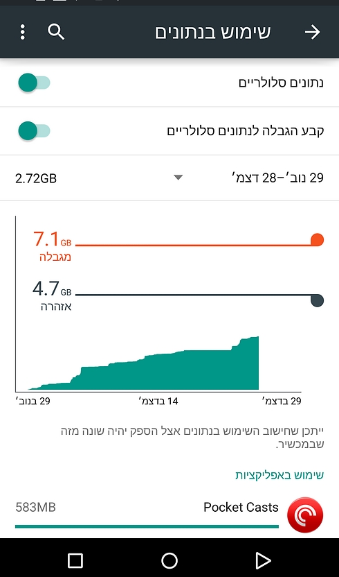 מכאן והלאה תעבורת הנתונים תיספר ותוכלו לראות כמה גלשתם דרך הרשת הסלולרית.