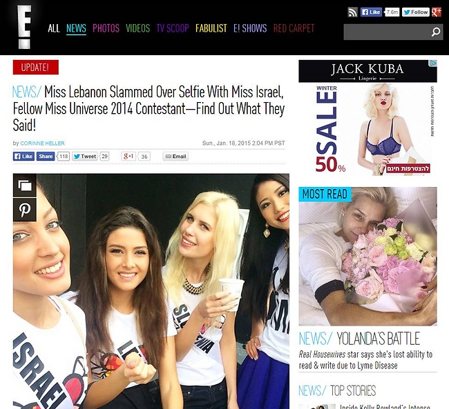 התמונה של מיס ישראל והמועמדת מלבנון בהכנות לתחרות מיס יוניברס לא מפסיקה להציף את הרשת ועכשיו כל האתרים הכי גדולים הצטרפו למסיבה. קבלו את הדיווחים מרחבי העולם