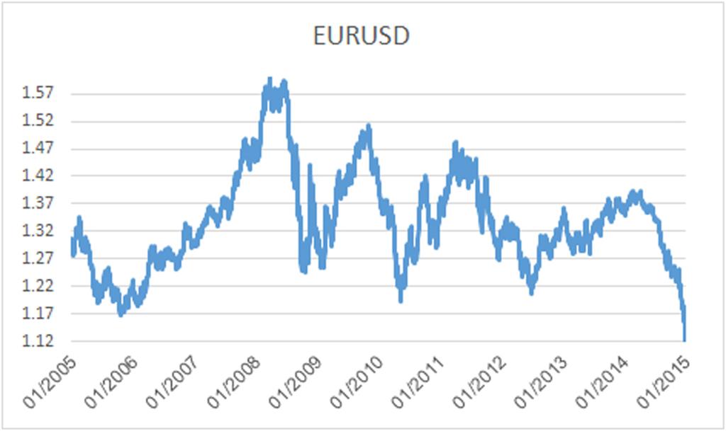 האירו מול הדולר בעשר השנים האחרונות