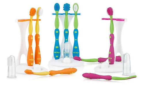 מותג מוצרי התינוקות המוביל Nuby, משיק את oral care set, ערכת ארבע מברשות שניים רכות, לארבעה שלבי התפתחות של התינוק. המוצר אינו מכיל ביספינול A.