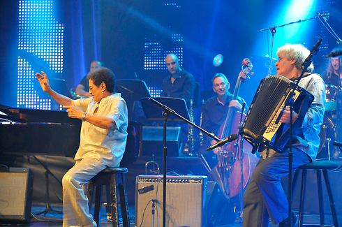 פטר ז"ל לצד יונה עטרי, במחווה ללהקת "התרנגולים" (צילום: דודו אזולאי)