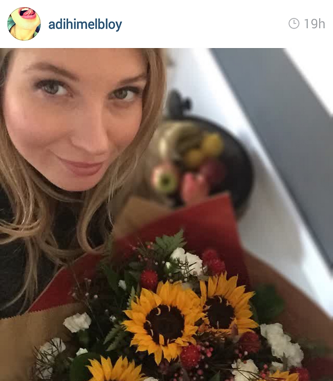 הבלונדינית היפה וההיריונית שאוהבת לשמור על חייה הפרטיים כמה שיותר העלתה תמונה שלה חוגגת עם זר פרחים, שסביר להניח קיבלה מבעלה, נדב פלד. אבל אין לדעת.