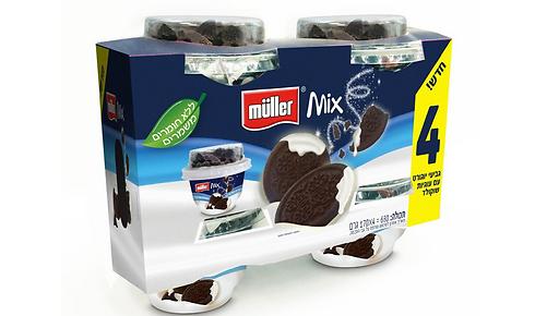 עד כה, ניתן היה להשיג את סדרת Muller Mix עם שלוש התוספות האהובות: פצפוצי שוקולד, גלילי ופל במילוי קרם בטעם אגוזים וקורנפלקס מצופה שוקולד. מעתה, ניתן ליהנות גם מיוגורט קרמי בתוספת שברי עוגיות טעימות. כל מוצרי Muller מיוצרים ללא חומרים משמרים, ניתן להשיג את Muller מיקס החדש באריזת מאגדת של רביעיית יוגורטים 170 מ"ל בכל נקודות המכירה.