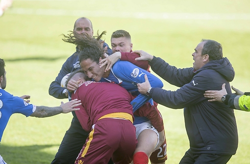 סקוטלנד: המשחק המכריע בפלייאוף על הכרטיס לליגה הראשונה בין מאת'רוול לריינג'רס נראה יותר כמו זירת קרב. אוהד מאת'רוול היכה את לי מקולוך עם מוט דגל הקרן, בסיום שחקן ריינג'רס בעט בגבו של שחקן יריב