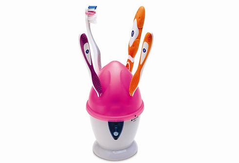 הסטריליזטור למברשות שיניים הוא מתקן ביתי לחיטוי מברשות שיניים – ראשון מסוגו בישראל. הסטריליזטור פועל באמצעות טכנולוגיית UV (אולטרה סגול) המבטיחה השמדה של 99% מהחיידקים, הוירוסים והפטריות המצטברות על מברשות השיניים. הסטריליזטור הינו בטוח לשימוש, מתאים לניקוי של עד 4 מברשות בו זמנית, ומשמש גם ככלי אחסון פרקטי ודקורטיבי למברשות בחדר הרחצה. המכשיר מופעל על ידי 2 סוללות אלקליין AA ובעל מיכל טפטוף נשלף וקל לניקוי. ניתן להשיג בצבעים ורוד וכחול.