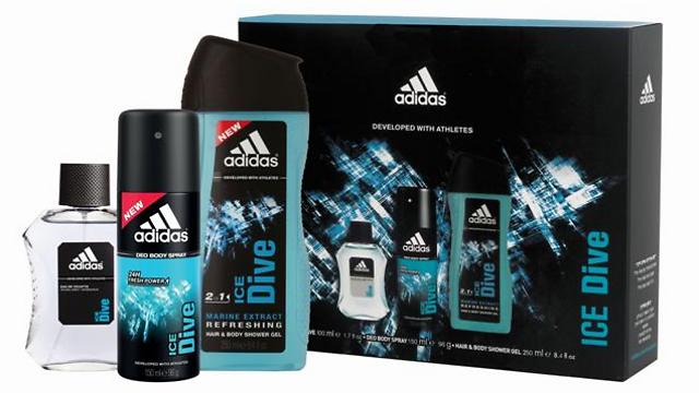 אדידס משיק מארז מיוחד לחג -Ice Dive לגבר. המארז כולל, שלושה מוצרים מובחרים מסדרתIce Dive : אפטר שייב, בודי ספרי וג'ל רחצה.