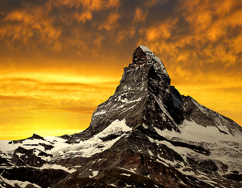 הר מטרהורן ממוקם בגבול בין שווייץ לאיטליה ונישא לגובה של 4,478 מטרים. ההר בנוי כפרמידה תלולה וצורתו הייחודי, יחד עם גובהו הרב, הפכו אותו לאטרקציה בקרב מבקרי האזור, אף על פי שאינו משמש כאתר סקי. בשעות השקיעה ההר המושלג משתלב בנוף עם השקיעה הכתומה ונוצר מראה אפוקליפטי עוצר נשימה.
