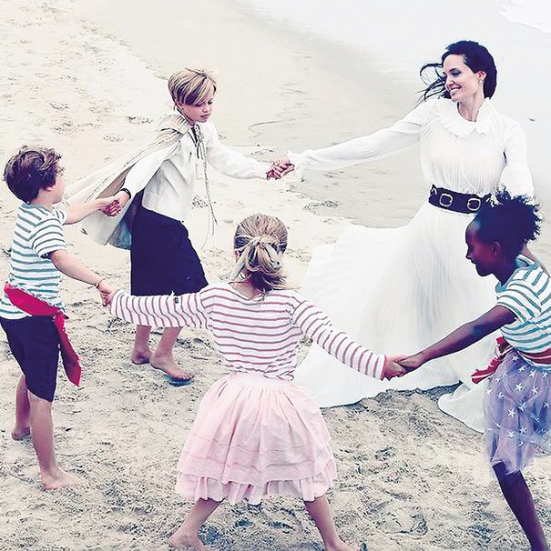 הזוג המלכותי של הוליווד הקפיד במשך שנים להפריד בין החיים בסרט לבין חיי המשפחה והם שמרו בקנאות על הפרטיות של גן הילדים הפרטי שיש להם בבית. אבל מגיע הרגע שבו צריך לקבל החלטות קשות, כמו למשל איך לקדם את הסרט החדש שלהם בדרך שלא תשאיר עין יבשה. וכשאין ברירה אז אין ברירה, ובני הזוג התייצבו עם ששת ילדיהם לסדרת צילומים ראשונה אי פעם.