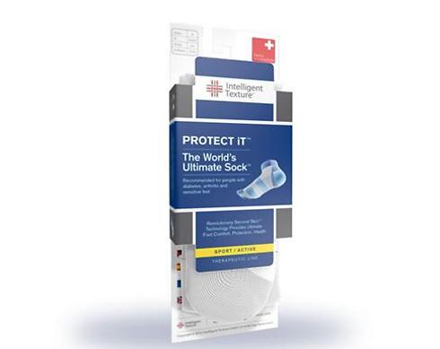 גרבי סוכרת PROTECT iT הם פרי מחקר ופיתוח בשיתוף רופאים אורתופדים. החומרים המתקדמים המשולבים בסיבי הבד מפחיתים פעילות בקטריאלית בכף הרגל. טכנולוגיית העיבויים הייחודית מסייעת במניעת פצעים ובהגנה על האזורים הרגישים של כף הרגל. הגרביים קיבלו את תו האגודה הישראלית לסוכרת. יתרונות: נוחות מרבית ורכות מלאה בזכות טכנולוגיית ריפוד ייחודית, שמירה על בריאות כף הרגל בזכות סיבי כסף אנטי-בקטריאליים, מניעת לחץ על כף הרגל הודות לסיבים המונעים את תזוזת הגרב, מניעת גירוי כף הרגל הודות למכפלת אלסטית רכה, וסריגה ללא תפרים SEAMLESS, נידוף זיעה ואווריריות בזכות החומרים המתקדמים המשולבים בסיבי הבד