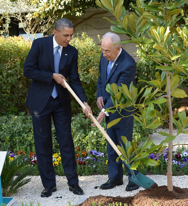 שמעון פרס וברק אובמה: מעדר שעובר מנשיא לנשיא
