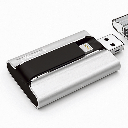 iXpand Flash Drive דיסק־און־קי לאייפון ולאייפד המאפשר בין השאר להעביר אליהם סרטים ומוזיקה. 220 עד 430 שקל