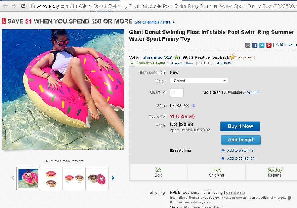 והנה עוד דוגמא לחיפוש לפי תמונה: ברשת האמריקנית הלא זולה, אורבן אאוטפיטרס, הדונאט המתנפחת עולה 26 דולר – 98 שקל. פער מחירים של כ-52% ועד 99%.