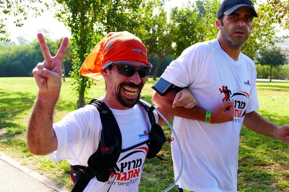 כשניסיתי להגביר לפני קו הסיום, הוא הזכיר לי שאסור להגביר כדי שלא אתמוטט בסוף. וכך כשהוא מכתיב לי את הקצב הנכון, המשכנו וחצינו את קו הסיום. הרגשות היו מעורבים - שמחת הסיום שהתערבבה עם תשישות מהמסלול.