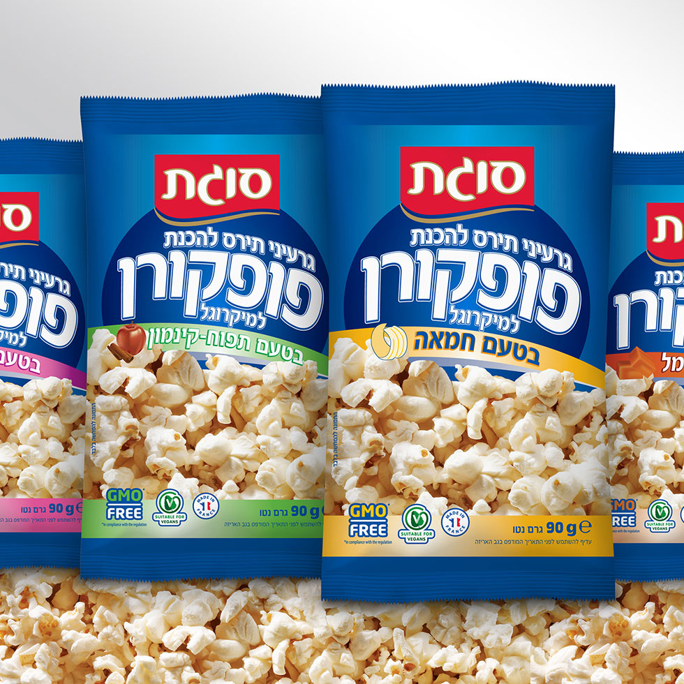 סוגת משיקה קטגוריה חדשה - פופקורן למיקרוגל בשישה טעמים שונים: תפוח-קינמון, מלח ופלפל, מתוק, וקרמל. הסדרה נמכרת בבודדים ולא באריזות. המחיר - בין 2.50 – 4.50 שקל.