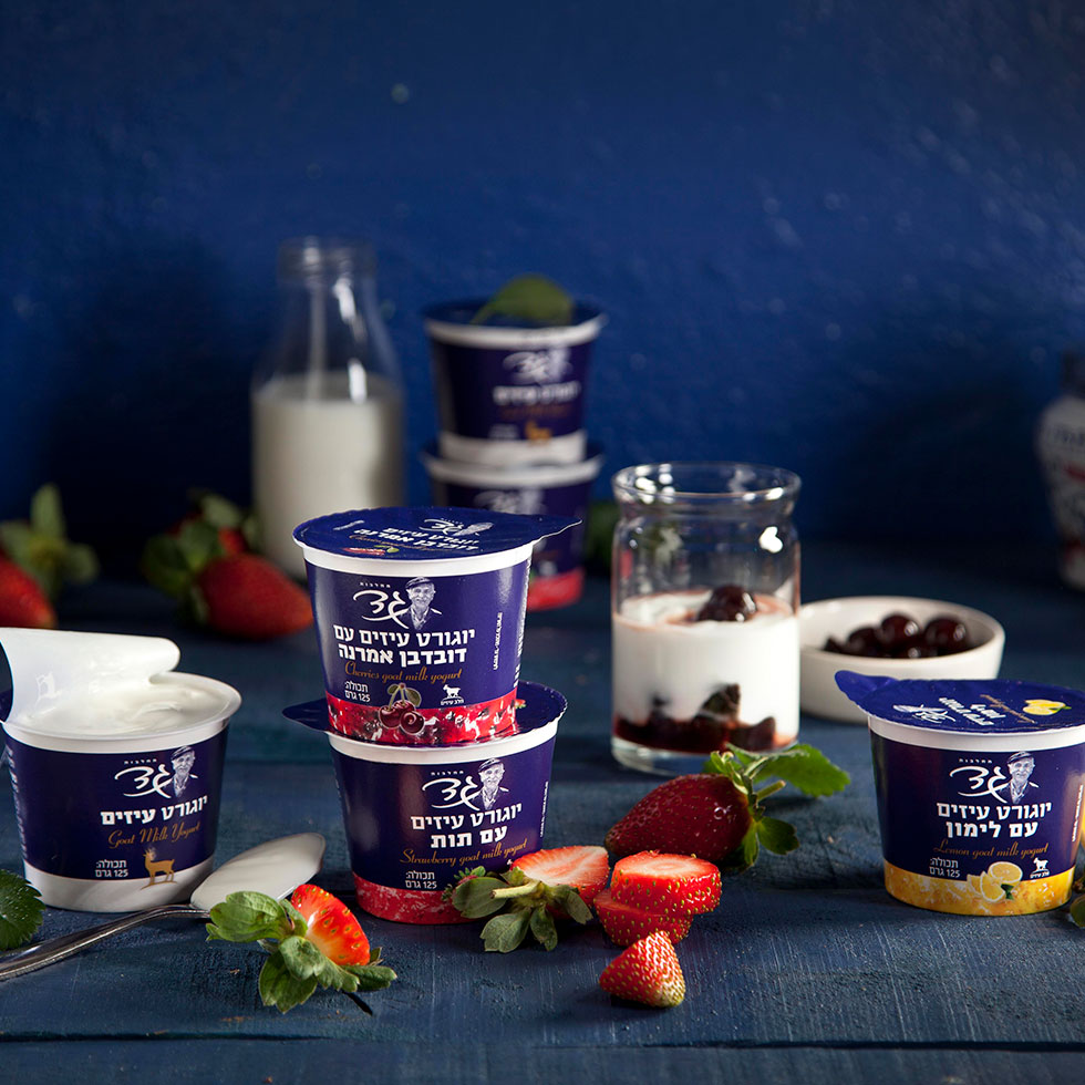 מחלבות גד משיקים סדרת יוגורט עיזים עם מחית פרי אמיתי. הטעמים: טבעי, תות, לימון ודובדבן אמרנה 2.8% שומן. המחיר המומלץ - 5.80 שקל ל-125 גרם.