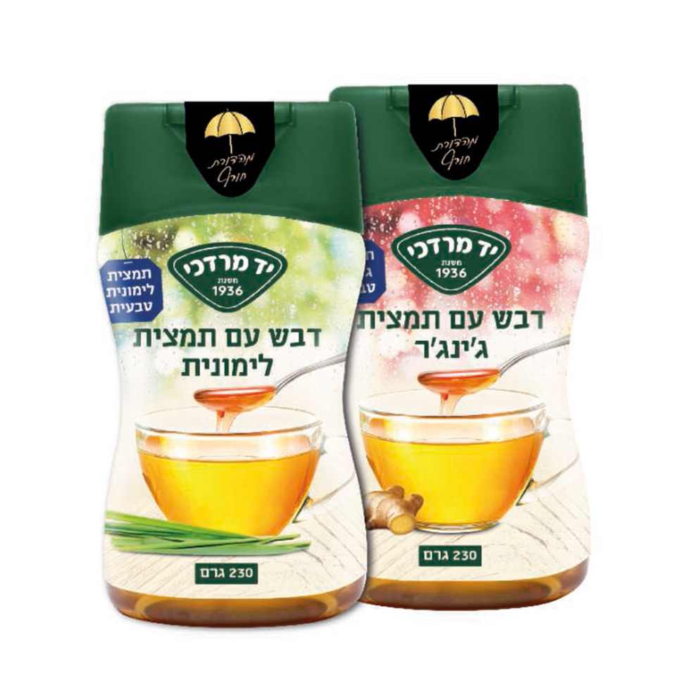 יד מרדכי משיקה במהדורה מוגבלת שני טעמים חדשים: דבש עם תמצית לימונית טבעית ודבש עם תמצית ג'ינג'ר טבעיות. המחיר - כ- 15.90 שקל ל-230 גרם בבקבוק לחיץ.
